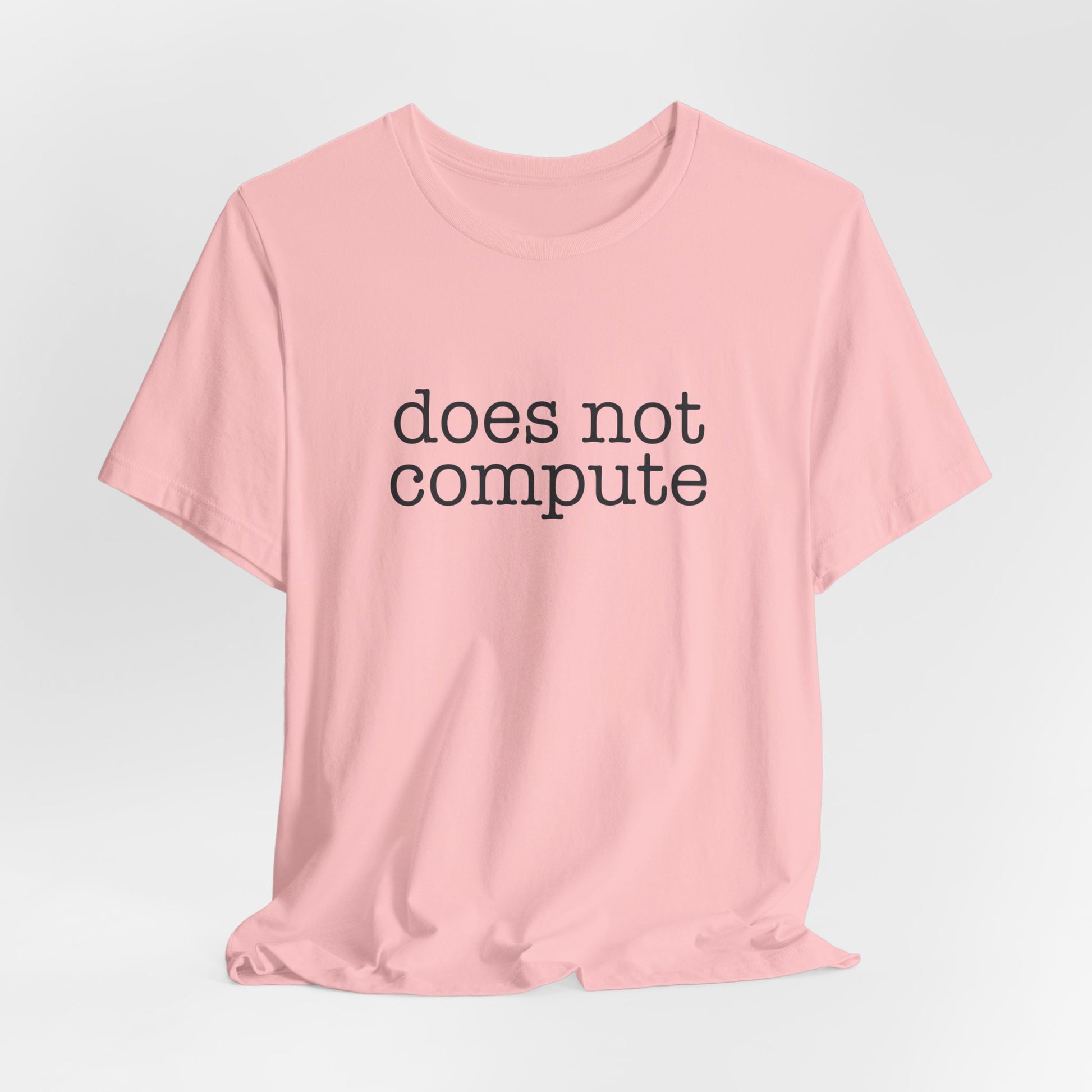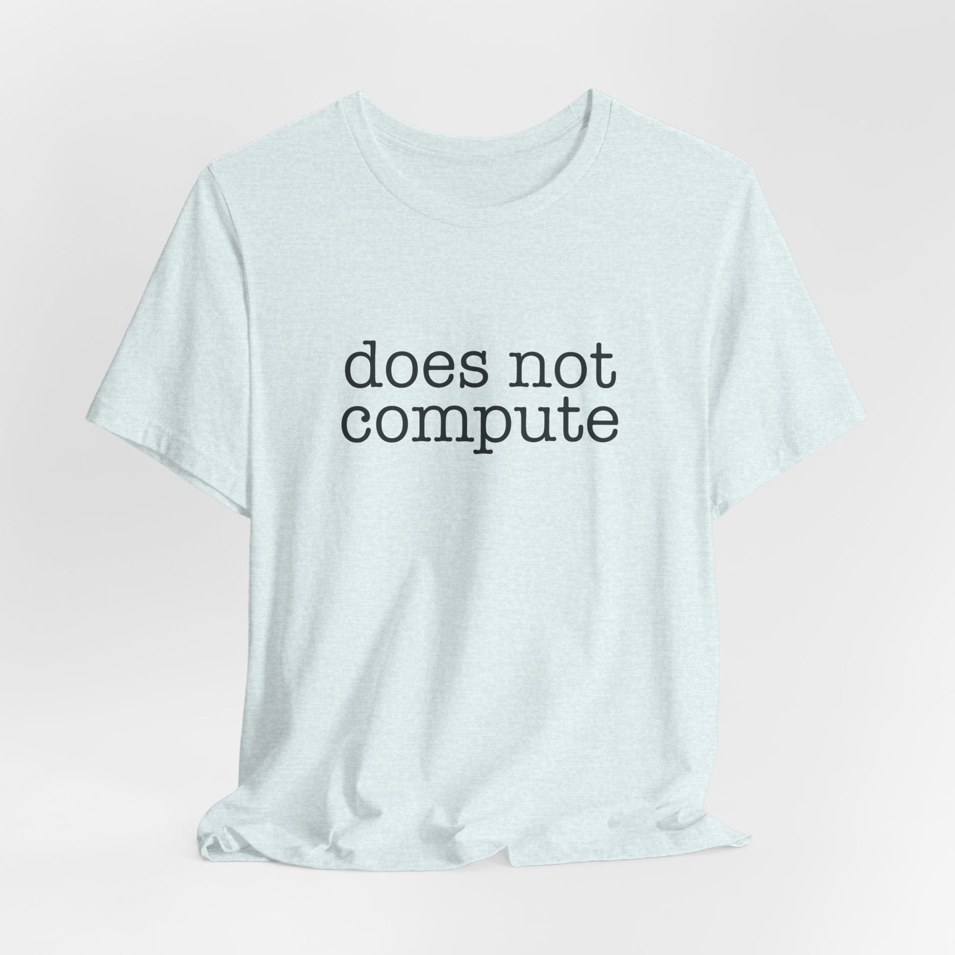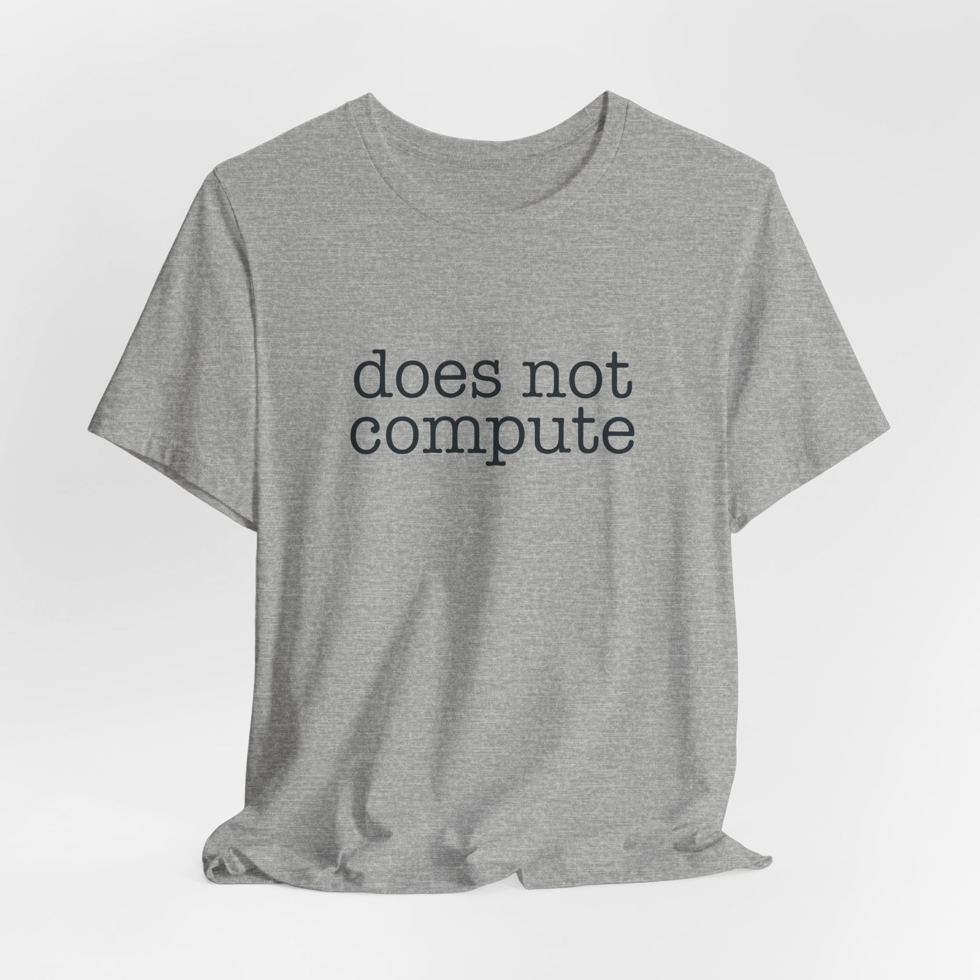 Does not compute. An analog classic. A crisp, honest tee with a wry, minimalist statement—stacked bold type reads “does not compute” down the front, leaving space for a smirk. The lightweight, airy cotton feels soft against skin and breathes easily under a jacket or on its own. Clean crew neckline and tailored retail fit keep the silhouette neat for everyday wear. Wear it to meetings you want to quietly exit, weekend errands when you need a little humor, or low-key gatherings where understatement speaks loudest.